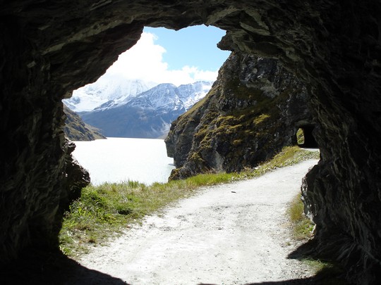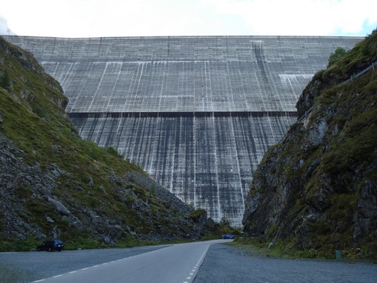 Vanaf de pyramides hebben we een mooie route genomen naar de Grande Dixence-dam, de hoogste dam van Europa (285 m). Bovenop de dam, en dus ook bij Lac des Dix, kan je alleen komen met de skilift of lopend.De stuwdam vanaf het punt waar je niet meer met de auto verder mag |