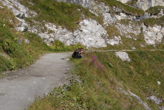 Na de wandeling langs het meer weer lopend naar beneden |