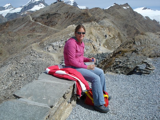 Vandaag staat de reis naar de Gornergrat op het programma. Eerst met de auto naar Visp. En vanuit Visp met de trein naar Zermat. Zermatt is een autovrije stad en alleen bereikbaar via de trein. Vanuit Zermatt zijn we met een speciaal tandradtreintje verder gegaan naar de Gornergrat (3089 meter). Hier vandaan hadden we heel mooi uitzicht op o.a. de beroemde berg de Matterhorn. We schrokken wel even van de prijs van de kaartjes, maar zijn toch maar gegaan (284 zwitsers franc, oftewel 233 euro).Op weg naar het station van Visp krijgt Ronald matriaalpech |
