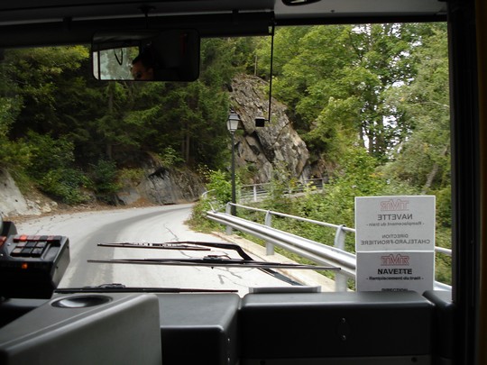 Op de heenreis kwamen we erachter dat er smiddags bijna geen treinen van Chamonix naar Matigny rijden. Na enig puzzelwerk was het duidelijk dat we slechts 1,5 uur in Chamonix zouden kunnen rondlopen voordat we weer terug moesten. Dit had overigens ook te maken met spoorwerkzaamheden. Hierdoor moest de grensovergang tussen Zwitserland en Frankrijk met een bus i.p.v. met de trein genomen worden. |