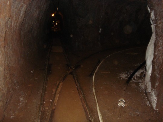 We werden na 1,5 km afgezet op een stationnetje ergens in de mijn |