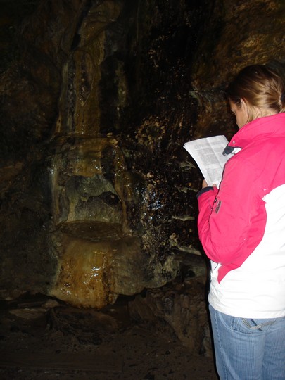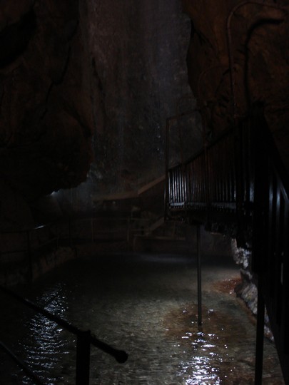 In de stad St-Maurice liggen de liggen de Grotte aux Fee. Dit was meer dan een eeuw geleden de eerste Zwitserse grot die opengesteld werd voor het publiek. Het is een pad van een halve kilometer, waarna je uitkomt bij een grote ondergrondse waterval. Je krijgt een A4-tje mee met Nederlandstalige informatie. Die je moet lezen als je bij het juiste nummertje in de grot bent.Zo zag de grot eruit |