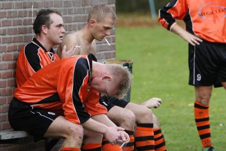 De voetballers van De CJVers hebben flink de smoor in na de 5-0 thuisnederlaag tegen DOS37. foto Ronald Hissink