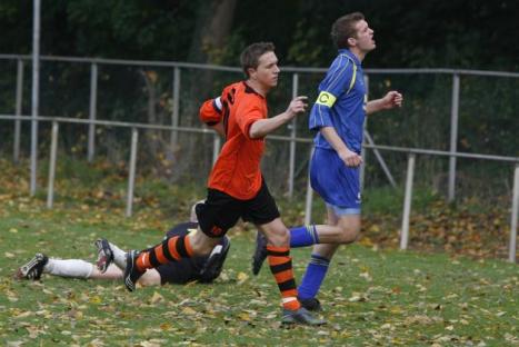 Björn Rutten (links) loopt tevreden weg nadat hij De CJV'ers op 3-1 heeft gezet.foto Ronny te Wechel