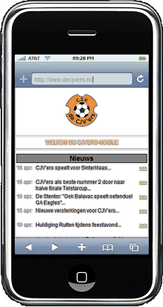 De website van de CJV'ers is nu dus ook bereikbaar via je mobiele telefoon. Het adres blijft gewoon hetzelfde, je komt via je mobiel automatisch op een andere webpagina. Deze mobile-versie bevat wel iets minder informatie dan de normale CJV'ers-site. Maar de belangrijkste zaken, zoals het laatste nieuws, de agenda, het wedstrijdprogramma, afgelastingen en uitslagen zijn erop te zien.