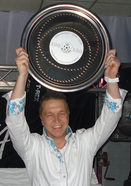 Bjorn Rutten maakte gisteren zijn 100e competitiedoelpunt voor de CJV'ers (in 5 seizoenen). Dit bleef natuurlijk niet onopgemerkt. Hij kreeg, zoals op de onderstaande foto te zien is, gisteravond op de white edition feestavond een schaal uitgereikt. Ook kreeg hij een paar white edition voetbalschoenen.