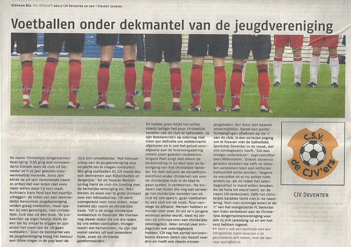 De krant maakt een serie afleveringen over clubnamen en de betekenis hiervan. Men was op de naam CJV'ers gestuit. Klik op het artikel om het te lezen.