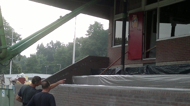 Er is echter haast geboden omdat binnenkort het beton op de tribunes gestort moet gaan worden zodat er een aanvang gemaakt kan worden met het leggen van het kunstgrasveld.
