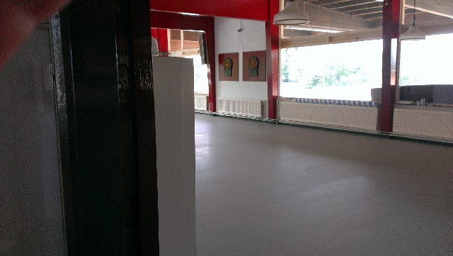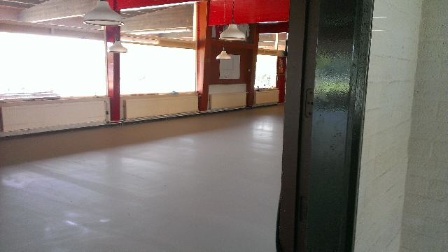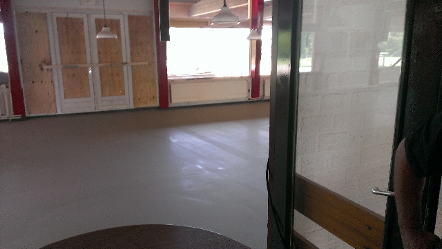 Het gaat hard, want de vloer in de kantine ligt er ook al in.